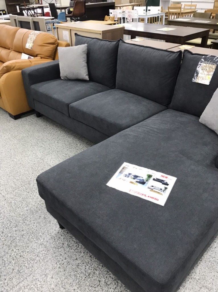 シックなカラーのカウチソファ