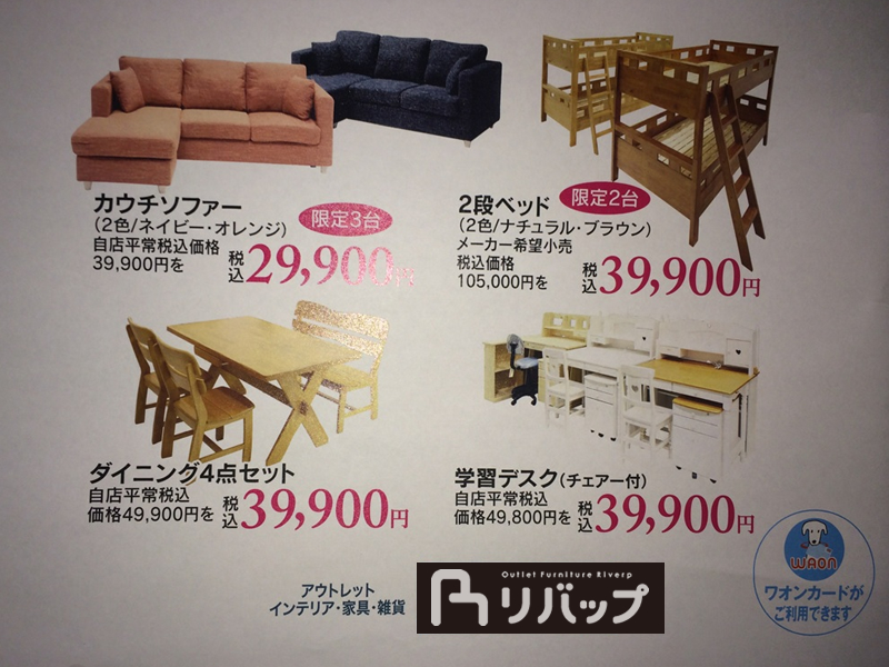 アウトレット家具のリバップ若松店です☆ 直方店に続きまして若松店も2014年新年のお年玉大特価!! 若松店限定です。 詳しくはリバップFacebookページをご覧ください。 (function…